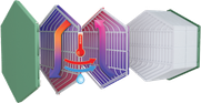 Les unités KVUE sont équipées d'un échangeur de chaleur enthalpique à contre-courant. Pendant la saison hivernale, la chaleur et l'humidité de l'air extrait sont transférées au flux d'air neuf via l'échangeur de chaleur enthalpique, ce qui réduit les pertes de chaleur par la ventilation. La chaleur et l'humidité de l'air ambiant sont transférées au flux d'air rejeté via l'échangeur de chaleur enthalpique pendant la saison estivale. Cela permet une réduction considérable de la température et de l'humidité de l'air soufflé, ce qui, à son tour, réduit la charge de climatisation.